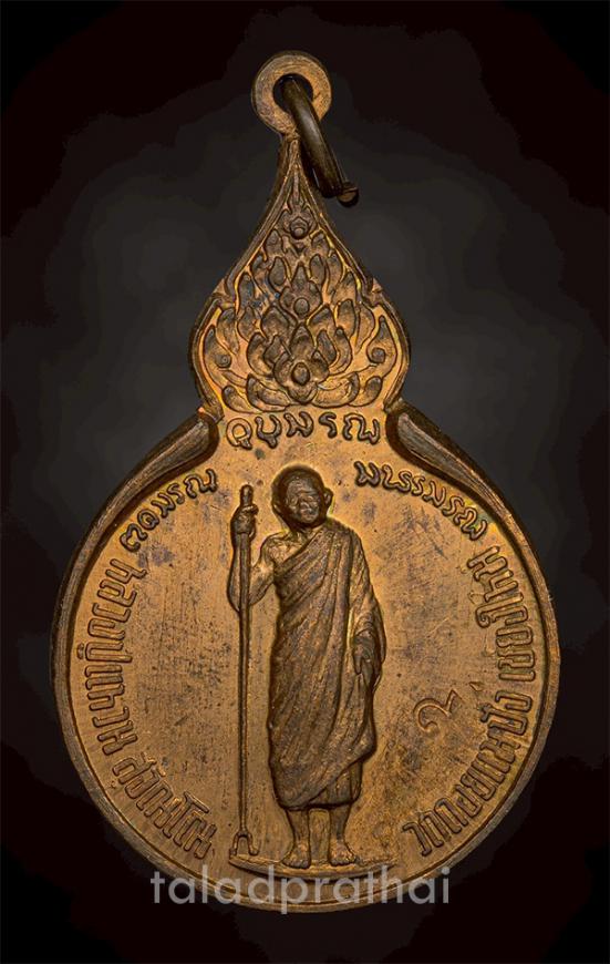 เหรียญยืนถือไม้เท้า รุ่นรวมใจ( 5 แชะ ) หลวงปู่แหวน วัดดอยแม่ปั๋ง จ.เชียงใหม่ ปี 2518