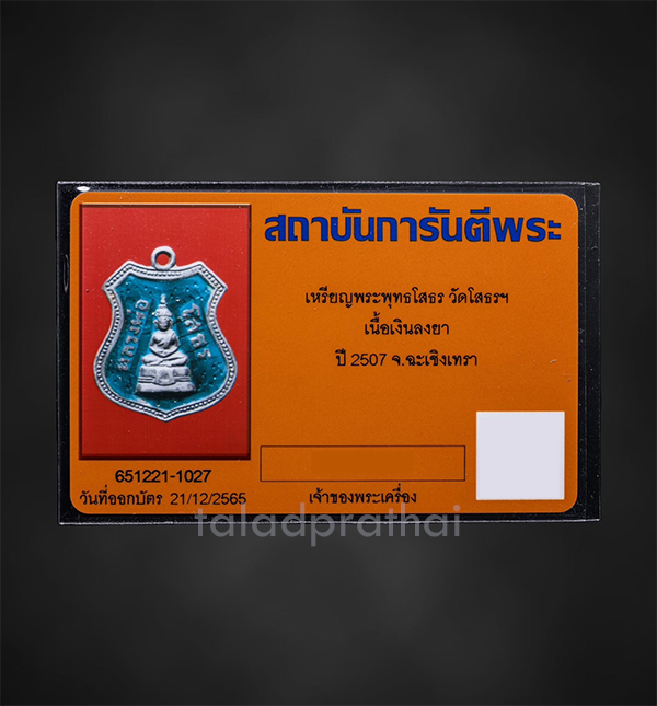 เหรียญอาร์มหลวงพ่อโสธรเนื้อเงินลงยาสีเขียว ปี 2507