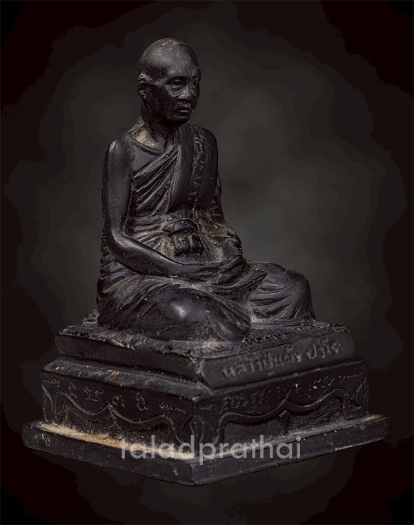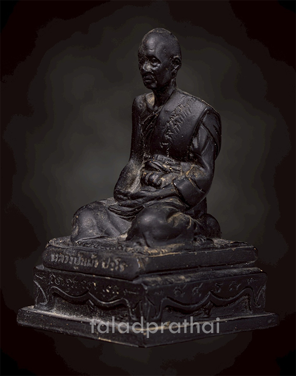 พระบูชาเนื้อนิลดำ หลวงปู่แผ้ว ปวโร วัดรางหมัน จ.นครปฐม หน้าตัก 2.5 นิ้ว สูง 4.5 นิ้ว ปี 2554